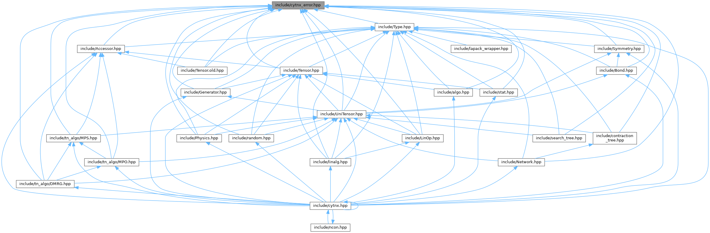 Include dependency graph for cytnx_error.hpp: